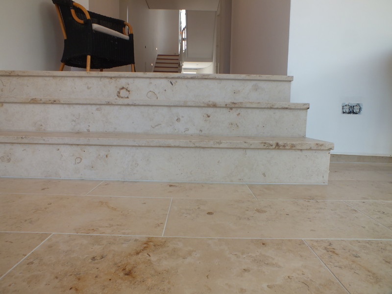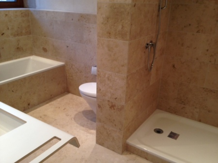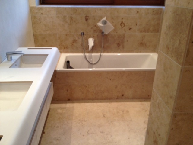 Ein Badezimmer mit nur einer Fliesensorte auszustatten erscheint oft monoton. Bei Verwendung von Jura Marmor hingegen beeindruckt auf den ersten Blick das Farben- und Musterspiel der eingebrannten fossilen Elemente. Der Begriff der schlichten Luxuriösität scheint hier zutreffend zu sein.